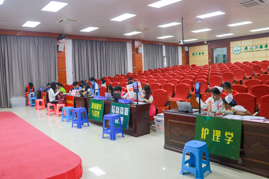 护理学院志愿者身着“护士服”,以昂扬专业的面貌迎接新同学