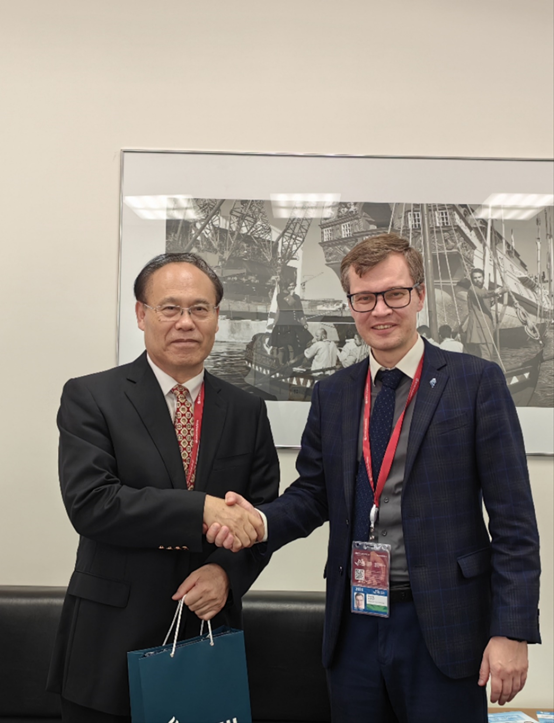 马龙海副校长诚挚邀请俄罗斯远东联邦大学校鲍里斯·科罗贝茨校长合影