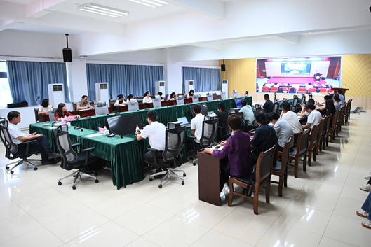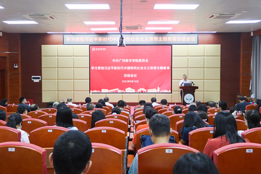9月18日,广州新华学院(下文简称“学校”)召开学习贯彻习近平新时代中国特色社会主义思想主题教育总结大会。省委教育工委主题教育第八巡回指导组(下文简称“指导组”)组长罗纪旋、副组长江木芳、组员欧晓毅、谢少勇、张曦、黄婷红到会指导,学校党政领导班子成员,两委委员,二级单位党、政正副职负责人,各职能部门、直属单位正副职负责人,各党支部书记100余人参加。学校主题教育领导小组组长、党委书记郝登峰作总结汇报,指导组组长罗纪旋讲话。大会由学校主题教育领导小组组长、校长王庭槐主持。