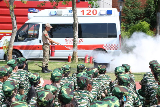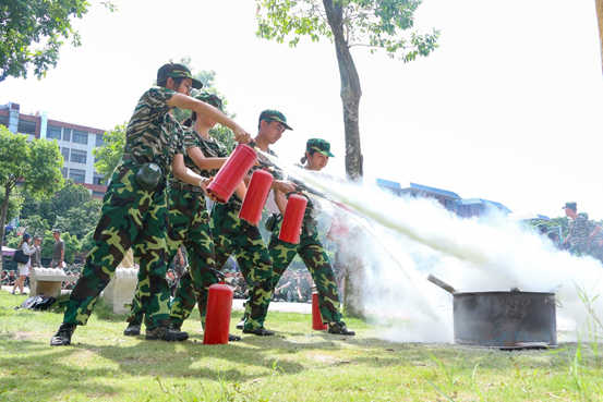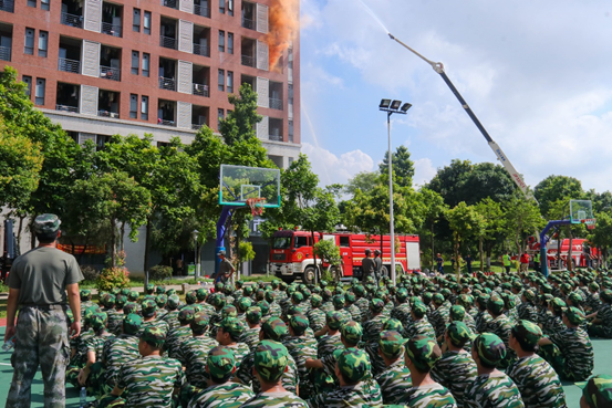 在本次新生军训活动中,消防教育被列为重要课程之一。为确保活动顺利开展,学校制定了详细的消防疏散演练方案,邀请了专业的消防员进行实地指导,通过专业的消防教育和还原火灾各种常见的场景,同学们学习到正确的逃生知识和消防技能。