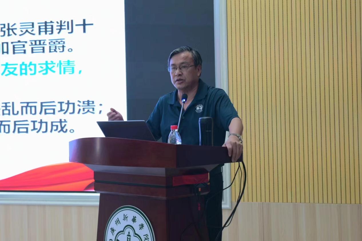 9月26日,广州新华学院(下文简称“学校”)党委举办了纪律教育专题报告会,学校马克思主义学院卢诚教授作主题为“以全面从严治党新成效推动学校高质量发展——学习领会习近平总书记关于全面从严治党的重要指示精神”的专题辅导报告。报告会由学校党委委员、纪委书记林源主持。