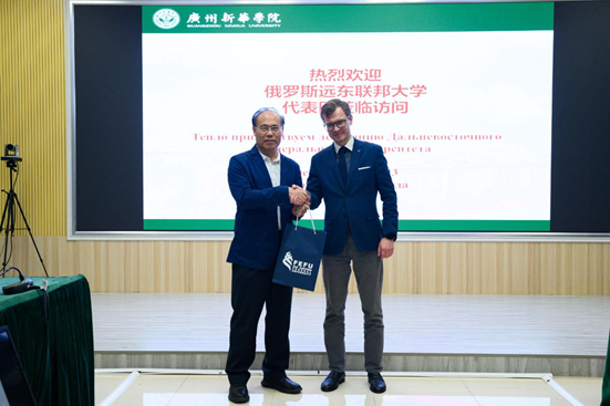 10月25日,俄罗斯远东联邦大学副校长、东方研究学院院长、地区与国际研究学院院长弗拉索夫·叶夫根尼·叶夫根尼耶维奇、副校长助理什韦多娃·瓦列里娅·罗曼诺娃、俄罗斯远东联邦大学外联部驻中国北京代表处代表王骏涛一行来访广州新华学院参观交流。