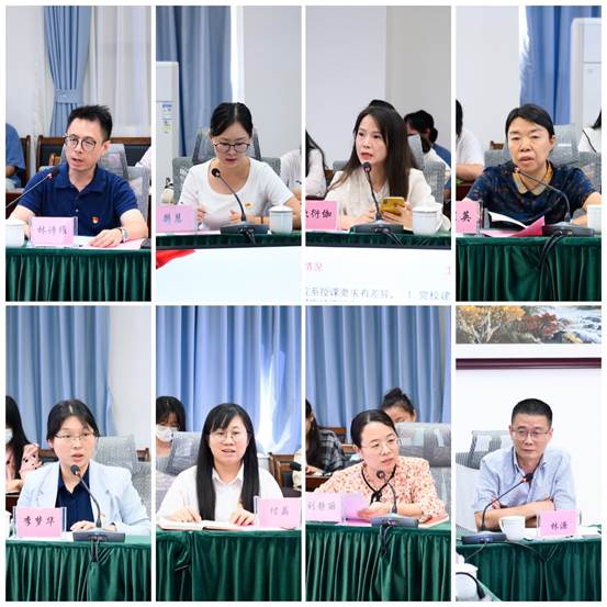 会上,《党的光辉历程》课程组林诗维老师、《党的性质、指导思想和宗旨》课程组樊慧老师、《入党的程序和条件》课程组欧衍伽老师、习近平新时代中国特色社会主义思想课程组周月英老师、《理想、信念和入党动机》课程组李梦华老师、《共产党员先锋模范作用》课程组付晶老师、《中国共产党章程导读》课程组刘静丽老师、《党的组织制度、纪律和作风》课程组林源老师分别就本组工作推进情况、存在问题、改进办法、工作成效、工作计划等作总结发言,并分享了工作开展以来的心得感悟,为今后课程组工作的有效推进提出意见和建议。