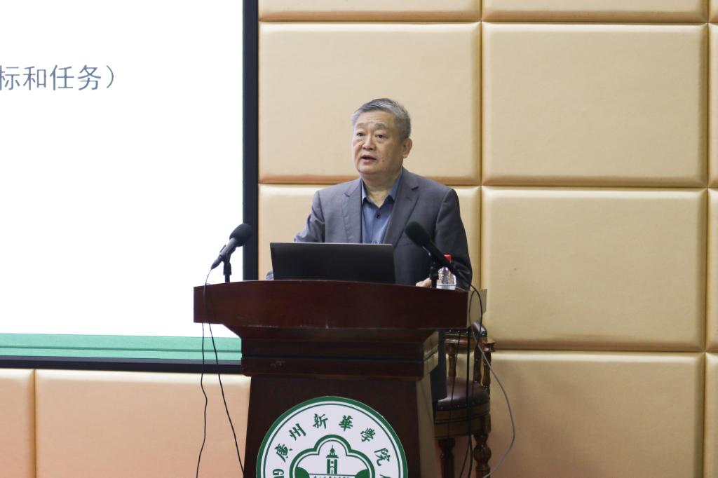 接着,王庭槐校长带领大家回顾了学校教育事业发展“十四五”规划的目标、重点任务等内容。他指出,学校“十四五”规划实施以来,坚持以习近平新时代中国特色社会主义思想为指导,全面贯彻党的教育方针,落实立德树人根本任务,统筹推进教育事业发展,人才培养质量和办学水平不断提高,取得了一系列阶段性显著成果:学校转设为独立设置的本科高校;中国共产党广州新华学院第一次党员代表大会胜利召开;获批硕士学位授予立项建设单位并与广州大学签订联合培养协议;获批广东省博士工作站、国家自然科学基金依托单位;会计学专业入选国家级一流本科专业建设点,人文地理与城乡规划、药学、行政管理等入选省级一流专业,16门课程入选省级一流本科课程;省级重点培育学科医学技术、省高等教育学会2020年度高等教育研究重大课题“‘四新’建设背景下的人才培养创新——逸仙新华班人才培养模式的探索与实践”皆以“优秀”等级通过结项;省级重点专业护理学、省级特色专业药学顺利通过省厅结项验收;融入式帮扶南澳县,助力粤东地区基础教育高质量发展等等。