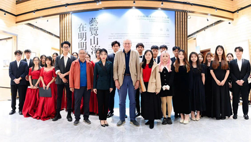 刘婉莉(霖霖)副校长陪同Ronald Wayne Anderson教授参观了近期在霖霖书院展出的“艺览山海在明明德——广东省高校美术学院院长作品展”。刘婉莉(霖霖)副校长热情地介绍展出画作,Ronald Wayne Anderson教授表示赞叹。