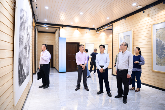 会后,潮州市政协委员一行在学校领导及东莞市政协领导、麻涌镇政协领导的陪同下,参观了霖霖书院与蔡照波艺术馆,并观赏了霖霖书院近期展出的“艺览山海在明明德——广东省高校美术学院院长作品展”,对霖霖书院与蔡照波艺术馆作为学校美育交流平台所发挥的育人作用表示赞许。