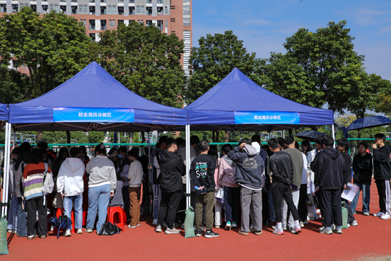 招聘会现场还设立了“简历诊断”“大学生征兵咨询处”“西部(山区)计划咨询点”等专区,咨询现场排起长队,受到同学们一致的好评。“简历诊断”专区内,学校特邀请广东智通人才连锁集团股份有限公司和中天仕达人才创新有限公司资深HR在招聘会现场为在校大学生提供就业简历诊断服务,做好毕业生的求职技巧精准服务。