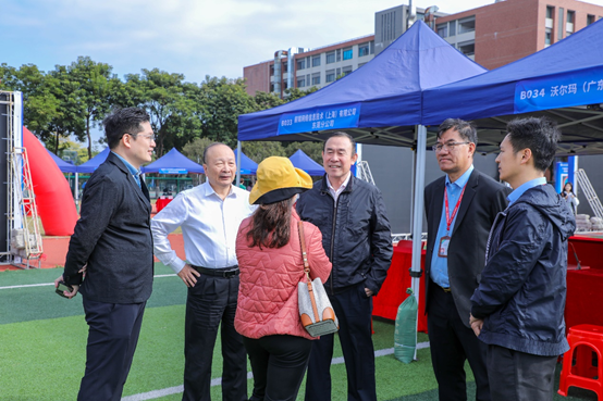 招聘会现场,东莞市人社局四级调研员侯首文、职介中心主任叶桂兴、人力资源服务中心主任吴德阳等领导,东莞市人社局麻涌分局局长赖炜超、副局长曾燕飞、业务股主任何楚学,学校副校长李毅、学校规划建设办公室主任刘荣宏、校长办公室主任黄立文等领导莅临现场关切指导,与招聘企业和应聘学子亲切交谈,并就校地企合作开展深入交流,助力毕业生实现高质量就业。
