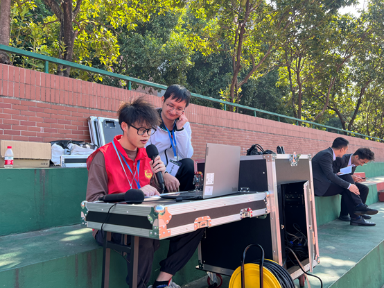 信息与网络中心在现场设置招聘信息广播站,及时地向同学们播报各企业招聘信息,帮助同学们更迅速地了解招聘会场内企业的具体信息、招聘需求及其参会展位号。