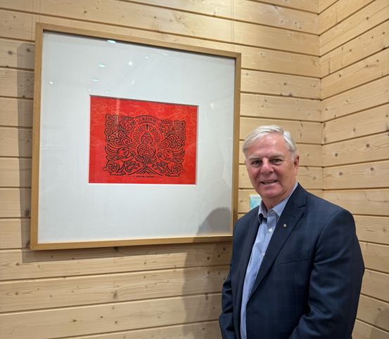 Peter James Little AM教授与展品《吉兔启祥瑞》合影