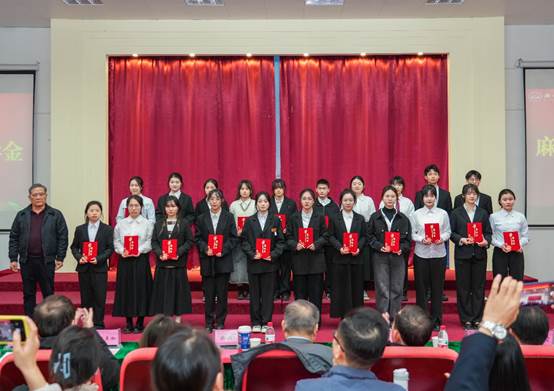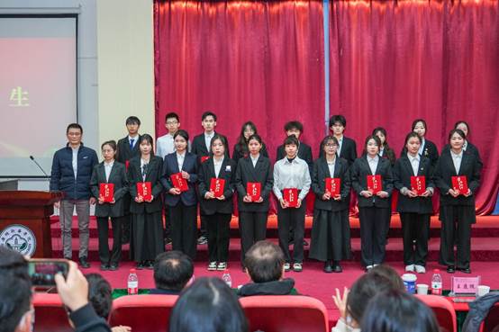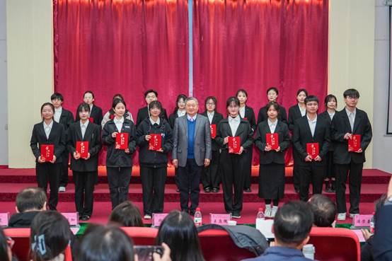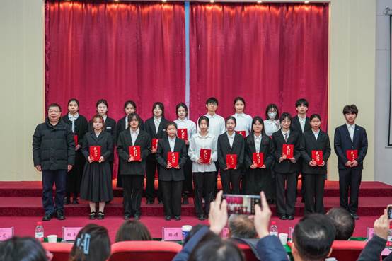 李毅为本次大会宣读表彰决定。学校领导及捐助企业代表分别为获奖学生和集体颁奖。