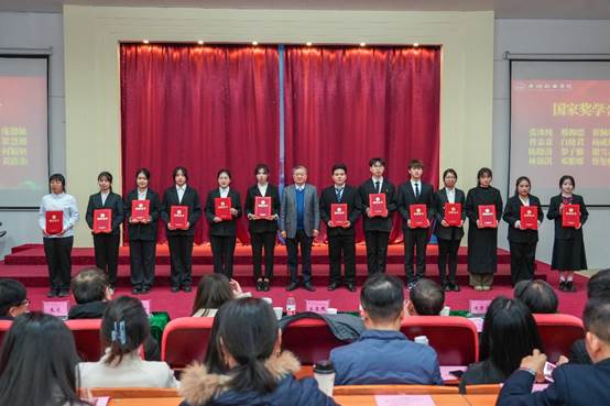 学校校长王庭槐为国家励志奖学金获得者颁奖