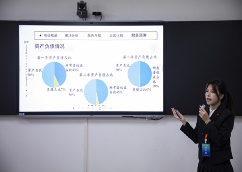 决赛现场,20个团队在舞台上角逐奖项。在项目陈述环节中,各参赛团队以周密的项目计划、缜密的逻辑思维和多元化的展示方式,赢得了评委团的青睐。在答辩环节中,各项目答辩人淡定自若,发言阐述条理清晰,答辩应对自如,问答间碰撞出惊艳的思想火花,充分展现了新华学子积极向上、团结协作、锐意进取的良好精神风貌,大力弘扬了本次大赛“筑梦新华、创业未来”的主题精神。