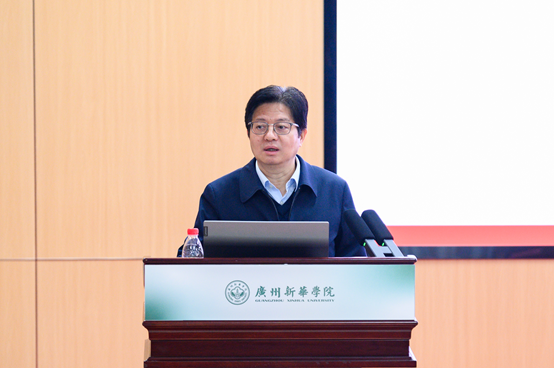 王庭槐在报告中,进一步明确2024年学校工作思路:我们要以习近平新时代中国特色社会主义思想为指导,深入贯彻党的二十大精神,坚持立德树人、三全育人、五育并举,聚焦落实全国教育工作会议、全省高质量发展大会精神,坚持“学术强校 质量立校 特色兴校 开放办校”的发展思路,以学校教育事业“十四五”规划为纲领,以支撑赋能新质生产力发展为动力,以加快推进学校高质量发展为目标,紧紧围绕转设过渡期检查评估、本科教学工作合格评估、硕士点建设三大重点聚焦发力,坚守本科教育高质量发展生命线,持续深化教育教学综合改革加快推进“四新”建设,提升新质生产力应用型人才培养支撑力,全面提高人才自主培养质量,努力把广州新华学院建设成为国内一流、特色鲜明的应用型高校,培养德智体美劳全面发展的社会主义建设者和接班人。