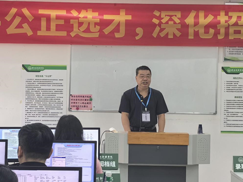 胡卓加副校长强调了招生阅档工作时间紧,任务重,强调招生录取无小事,确保招生录取零失误,严格遵守招生录取现场工作纪律。