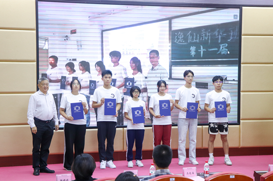 王庭槐校长(左一)为广州校区2024级“逸仙新华班”学生代表颁发入班证书
