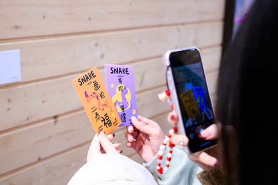“来到霖霖书院前,仿佛踏入了一场跨越时空的对话”,2021级工商管理专业李柳谚同学说,“这次展览不仅是视觉盛宴,更是我心灵的触动,让我深切体会到艺术创作根植于生活土壤的力量,以及‘心生万物’公益活动所结出的丰硕果实。” 李柳谚同学现场还参与了抽红包活动,她说,“蛇年图案的红包,更是增添了几分韵味,使这场艺术之旅更加丰富多彩。感谢学校组织这样一次充满艺术气息和惊喜福利的活动!”