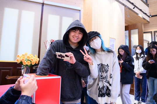 活动现场同学们领取新年利是