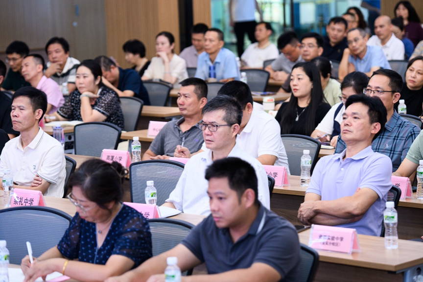 枫溪镇各中小学书记、校长、骨干教师代表,涵盖语文、数学、英语、体育、科技等学科,与广州新华学院中国语言文学系、外国语学院、信息与智能工程学院、马克思主义学院、体育系、人工智能与数据科学系、创新创业学院(FabLab创新中心)、校工会、校长办公室、新闻中心等院系和部门代表共同参加。仪式由广州新华学院工会副主席丁建敏主持。