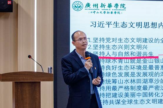 我校王小平老师以《何为“生态文明”——对习近平生态文明思想内涵的阐释》为题,从人与自然关系演进的历史视角切入,系统阐释习近平生态文明思想内涵,引导大学生夯实理论根基,自觉践行绿色发展理念。