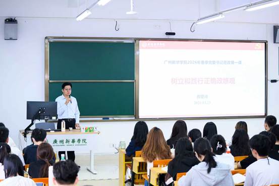 3月23日,广州新华学院(以下简称“学校”)党委书记郝登峰研究员以“树立和践行正确政绩观”为主题,在东莞校区为法学院师生代表讲授了一堂深刻而生动的“思政第一课”。