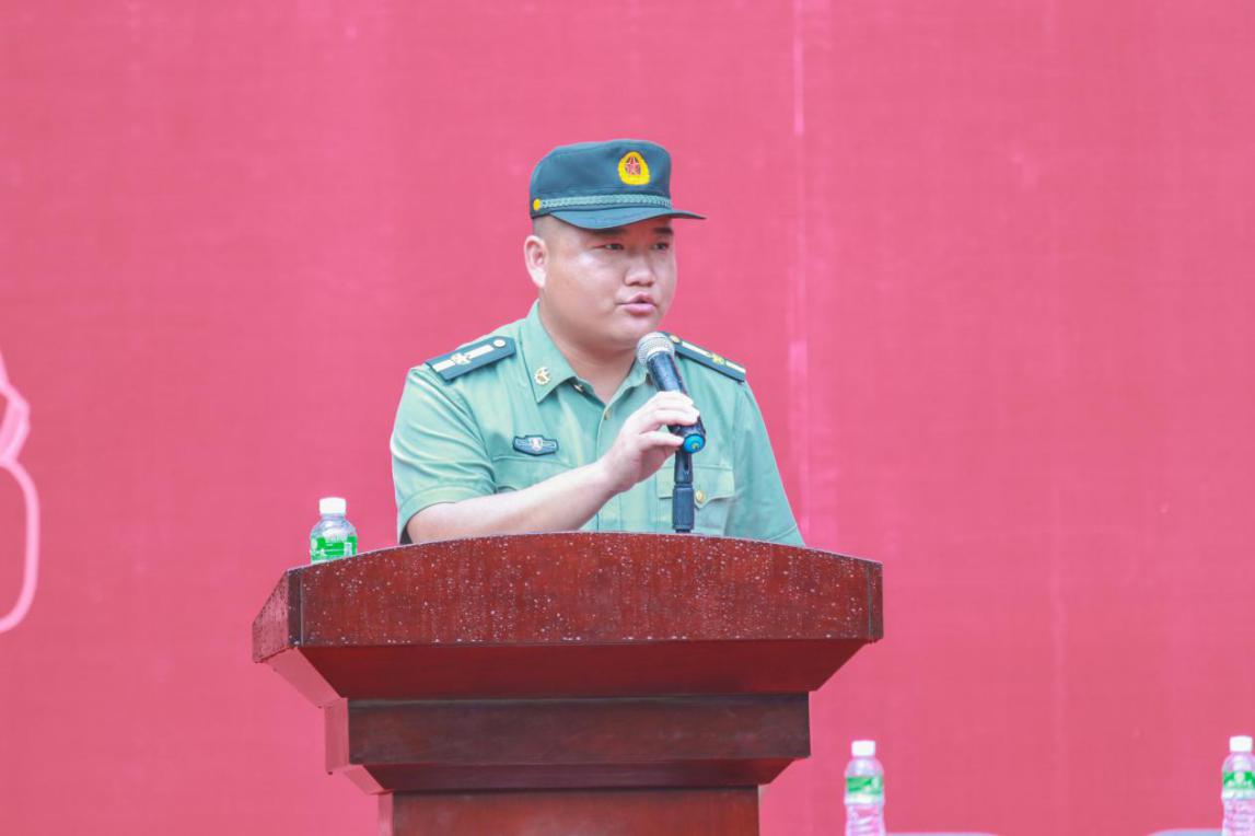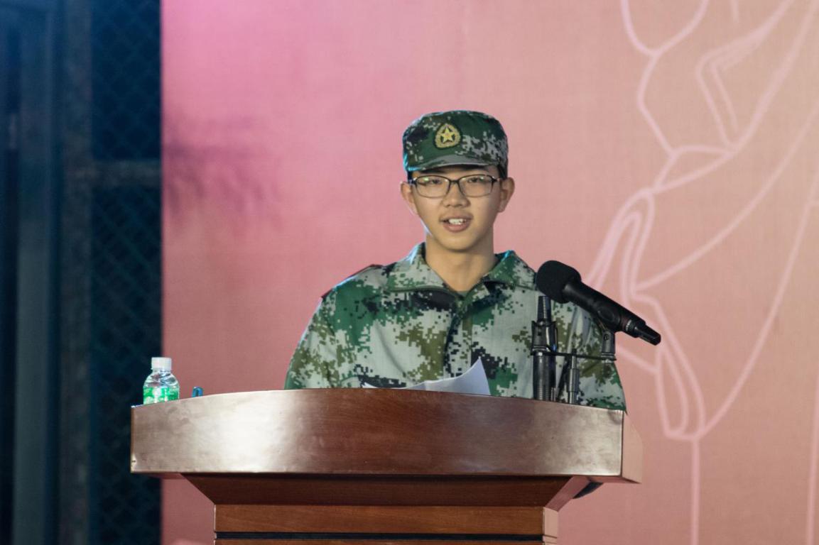 2019级新生陈泓涛同学将军训比作激励冲锋的号角、规范行为的尺子、照耀前行的火炬,号召同学们要用“苦心志、劳筋骨,饿体肤”用长征精神来激励自身,做到服从命令、听从指挥,发扬不怕苦、不怕累的优良作风,为今后的学习和生活打下良好的思想基础,实现我们的爱国心和报国志。