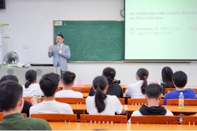 西班牙作家Ignacio Vleming和我校学子就中西方姓名差异和蕴含的不同文化与同学们进行了热烈的探讨。Ignacio Vleming认为,诗歌是“视觉上的艺术”,而艺术与文学是相互影响的,通过与同学们的交流对中国文化有了更加深刻的了解,希望能与同学们保持联系,将这份珍贵文学情谊延续下去。