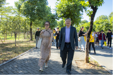 王庭槐校长与戴凡教授漫步校园