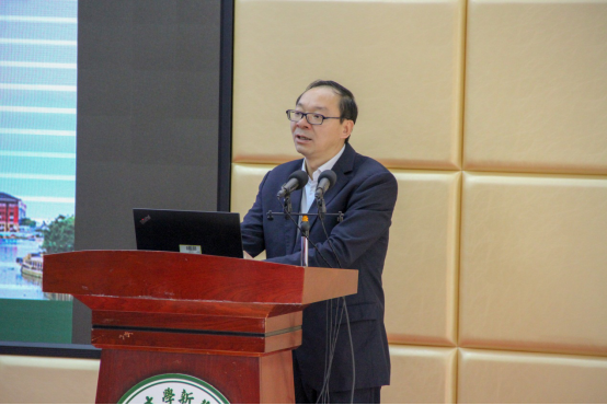 王庭槐在聘任仪式上致辞。他介绍了逸仙新华班“1234”人才培养模式,并指出“三导师”制度是逸仙新华班培养机制中推动学生个性化特长发展的一个重要举措,通过“三导师”制度将逸仙新华班学生“宽口径、厚基础”的前期培养和后期专业及科研能力的培养有机结合起来,有利于实现逸仙新华班人才培养目标和个性化培养要求。他希望受聘的导师们要把作为逸仙新华班的学生导师看作是一份荣誉和责任,为培养德智体美劳全面发展社会主义事业建设者和接班人而努力。