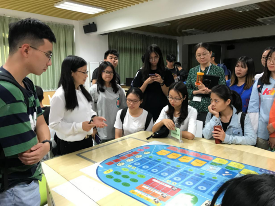 肖美艳还为参访的同学们详细介绍了该课程的操作方法,同学们认真听完后,纷纷表现出对该门实操课的浓厚兴趣,希望能够有机会亲身体验沙盘课的魅力。