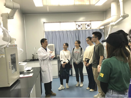 关冠恒老师介绍了药学院实验室的概况及承担的教学科研工作,实验项目的开设与药学专业毕业生的工作岗位的要求紧密衔接。同学们在药学院实验室看到了制备药物、检测药物、研发药物所需要的一系列仪器,了解药学课程体系的整体构建和实验教学的基本流程。