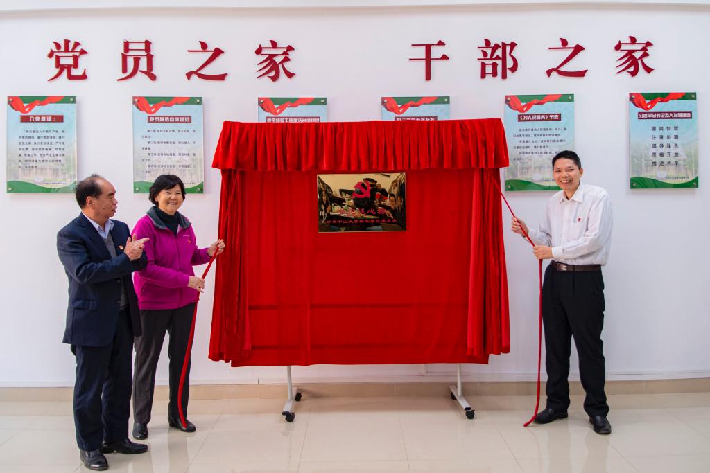 揭牌仪式由学校党委统战部部长、党委组织部副部长殷丹同志主持。指导组组长林创家同志,学校党委书记周云同志,学校党委副书记、副校长蓝永金同志共同为“中山大学新华学院书记谈心坊”揭牌。