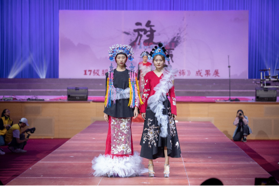 为了进一步开展落实教育部出台的《关于切实加强新时代高等学校美育工作的意见》,积极推进高校美育改革,用中华优秀传统文化增强新时代大学生文化自信,推动校园文化繁荣发展,12月19日晚,中山大学新华学院(下文简称“我校”)举办2017级服装专业成果展。此次成果展以“旌旆”为主题,充分将中国传统服饰艺术、少数民族服饰文化与当代服装潮流趋势相结合,以“服饰之美”为在校师生带来一场视觉盛宴。