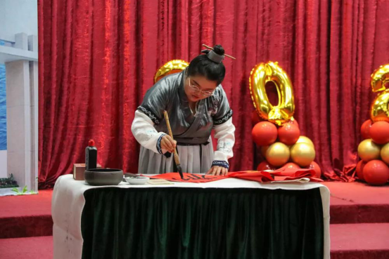 酣畅浑厚的诗文朗诵,观众沉醉诗文意境其中;铿锵有力的书法笔势,挥毫落纸如云烟;炫目的汉服展示,道出了礼仪之邦五千年的辉煌文明。