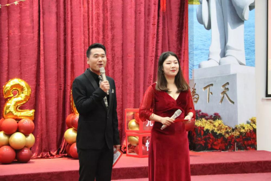 谷长乐老师与廖菁老师主持晚会节目
