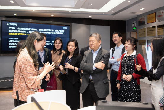 随后,王庭槐校长一行来到科大讯飞华南人工智能展厅参观。科大讯飞讲解员向我校代表详细介绍了人工智能技术在教育、医疗、政法等领域的应用。王庭槐校长一行详细了解了讯飞超脑、讯飞翻译机、讯飞智能录音笔、讯飞智能办公本、讯飞开放平台、智慧课堂等系列产品。现场演示的语音合成、语音识别、口语评测等技术的最新成果及其深入社会生活方方面面的各类创新应用引发了大家的浓厚兴趣。