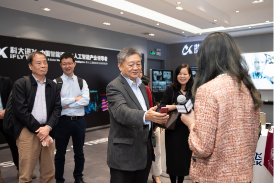 王庭槐校长一行首先参观了科大讯飞启明测试博物馆,了解从科举考试到现代化人工智能考试的历史沿革,科大讯飞从创立至今在智能测试领域所取得的各项科技进展与教育成果。