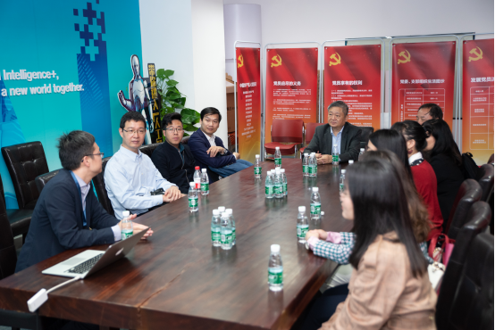 参观后,双方在会议室围绕人工智能新技术教育领域的应用,就加强科教协同、深化产学研合作、提升高校创新能力、联合推进双方深度融合等内容进行了深入交流和探讨。