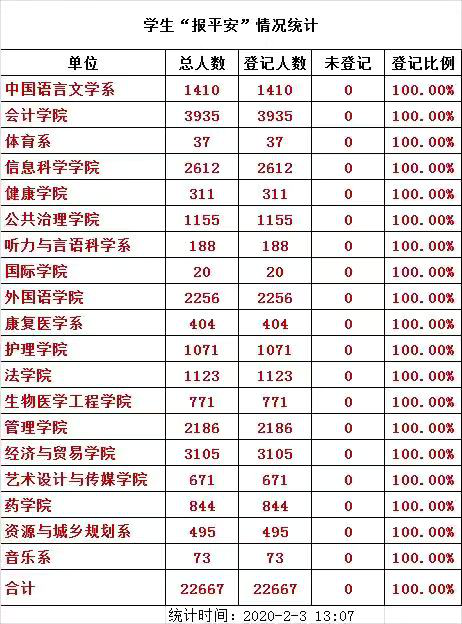 我校积极响应省厅“四精准”要求,信息与网络管理处和学生处密切合作,在极短时间内开发了微信小程序“报平安”,小程序上线后仅用三天时间百分之百在线完成了全校2.3万余名师生的信息采集和报平安工作,为学校防控疫情打下坚实基础。