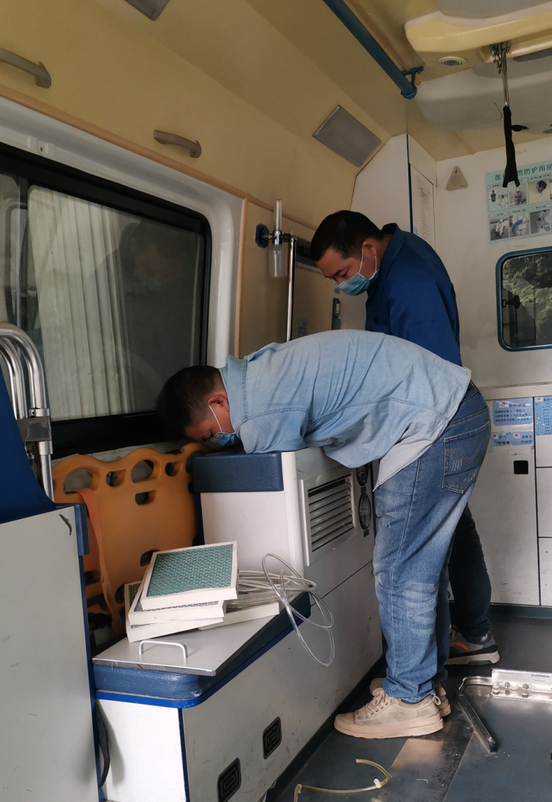 2020年春节前夕,为保障新冠肺炎疫情期间各网络医院负压救护车的正常运行,刘洋负责组织带领救护车公司售后维护人员到各网络医院进行检修保养工作。