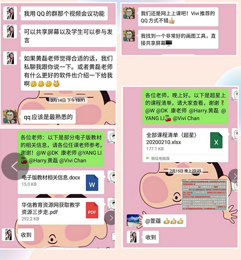 面临因疫情开学延迟的问题,国际学院成立了教学工作小组。小组梳理了2020年春季学期的课程安排和教学资源,积极组织任课老师对学生进行线上指导,教务员及时了解学生线上学习的情况,与任课老师反馈并沟通,灵活指导网络远程教学,确保疫情防控期间的教学进度和教学质量。