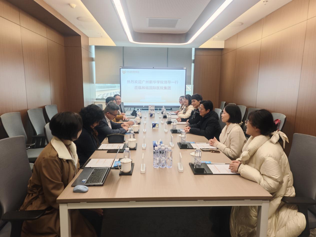 为深入贯彻落实健康中国战略,精准对接粤港澳大湾区医疗卫生人才需求,进一步推动校企联动与产学研深度融合,1月23日,广州新华学院(以下简称“我校”)党委书记郝登峰、护理学院院长王秀岚、副院长黄洛莹、汪丹博士、曲楠楠老师、何洁凝老师一行六人赴和祐国际医院集团(以下简称“和祐医院”)开展进校医合作洽谈,双方正式签约共建“实践教学基地”。