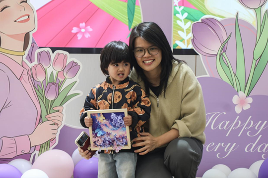 经过一个多小时的精心制作,一框框精美的永生花作品陆续诞生。每一件作品都凝聚着女教职工们的巧思与耐心,展现了她们细腻柔美、热爱生活的一面。大家手捧自己的作品合影留念,脸上洋溢着幸福的笑容。