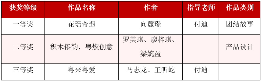 近日,广东省教育厅公布了关于《2025年“爱在广东”民族团结进步教育活动结果的通知》,经组织专家评审,广州新华学院学生参赛作品《花瑶奇遇》荣获一等奖,《积木傣韵,粤燃创意》荣获二等奖,《粤来粤爱》荣获三等奖!