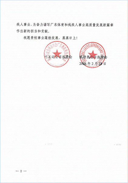 广州新华学院收到残特奥会省执委会的感谢信