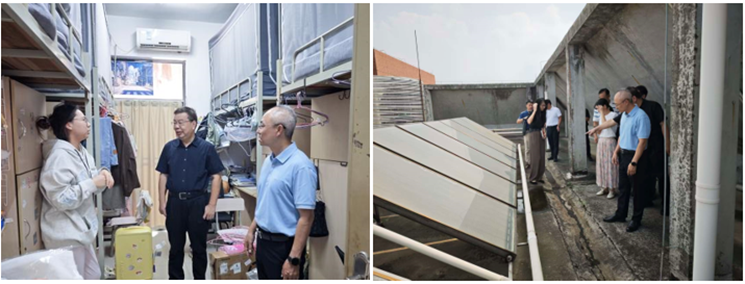 督导组一行重点检查了校园蚊虫防控措施落实情况,深入学生宿舍、楼顶等重点区域进行实地察看。在专题座谈会上,胡卓加代表学校从组织领导、人员管理、卫生环境整治、健康宣传教育方面,详细汇报了学校针对基孔肯雅热所采取的防控措施及成效。检查组对学校防控工作给予肯定,并就进一步加强校地合作、共同做好防控工作提出了指导意见。