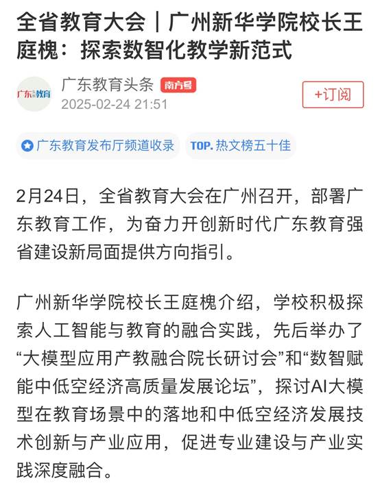 2025年6月,《南方日报》《羊城晚报》等媒体报道学校积极探索人工智能与教育融合实践,举办相关研讨会和论坛,推动AI大模型在教育场景落地,促进专业建设与产业实践深度融合。这一举措不仅为教育发展注入了新活力,更为学生提供了更加先进、高效的学习方式。