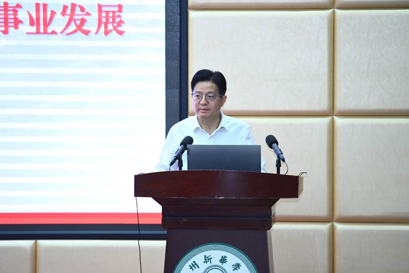 刘荣海深情寄语全体教职员工,希望大家以陈仲本教授等优秀教师为榜样,始终保持“平常心与责任感”,将对教育事业的热忱和对学生的关爱融入日常工作。他特别强调“一日新华人,终身新华情”的理念,指出学校是全体教职工共同的精神家园,衷心感谢并会永远铭记每一位为学校发展作出贡献的新华人。