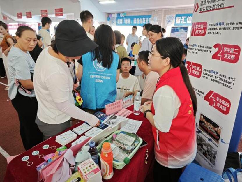 在迎新现场,党员先锋岗“答疑充电站”热闹非凡。学生党员们围绕入党流程、专业学习经验等内容,为新生及家长进行耐心讲解。从入党的基本条件、申请流程,到大学专业学习的方法、过往学长学姐的成功经验,党员们都倾囊相授。同时,他们以热情专业的服务,缓解了新生初入校园的陌生与迷茫,让新生感受到党组织的温暖。