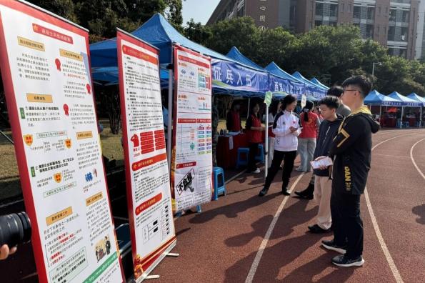 为进一步增强2026年征兵宣传的针对性与覆盖面,鼓励更多毕业生携笔从戎、报效国家,12月6日,广州新华学院在东莞校区举办的2026届毕业生校园招聘会上,特别设立征兵宣传与政策咨询专区,将入伍政策精准送达每一位求职学子身边。